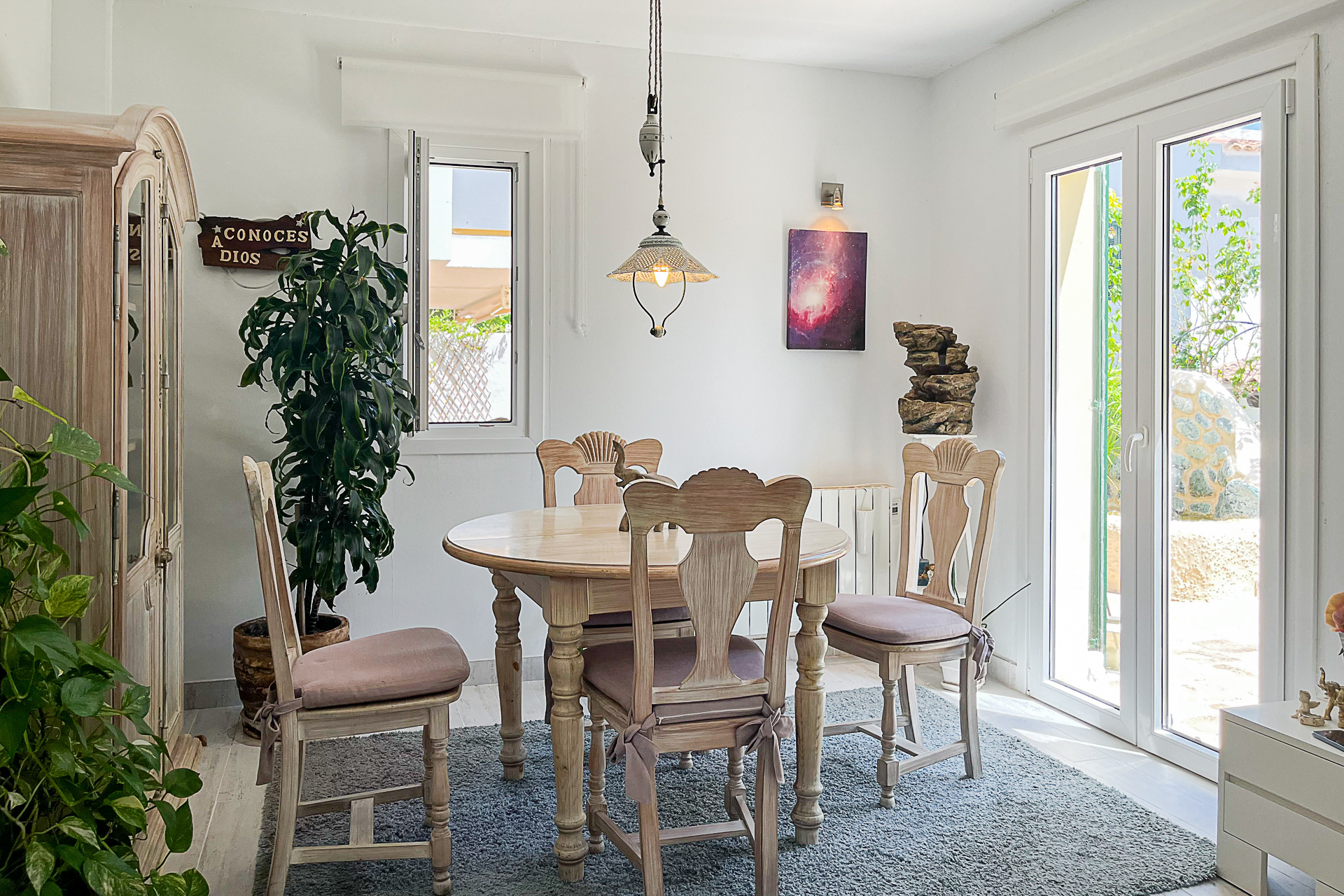 Upon entering the property, you are greeted by a terrace that invitingly surrounds the house. The entrance area opens into a spacious, open-plan living/dining area.