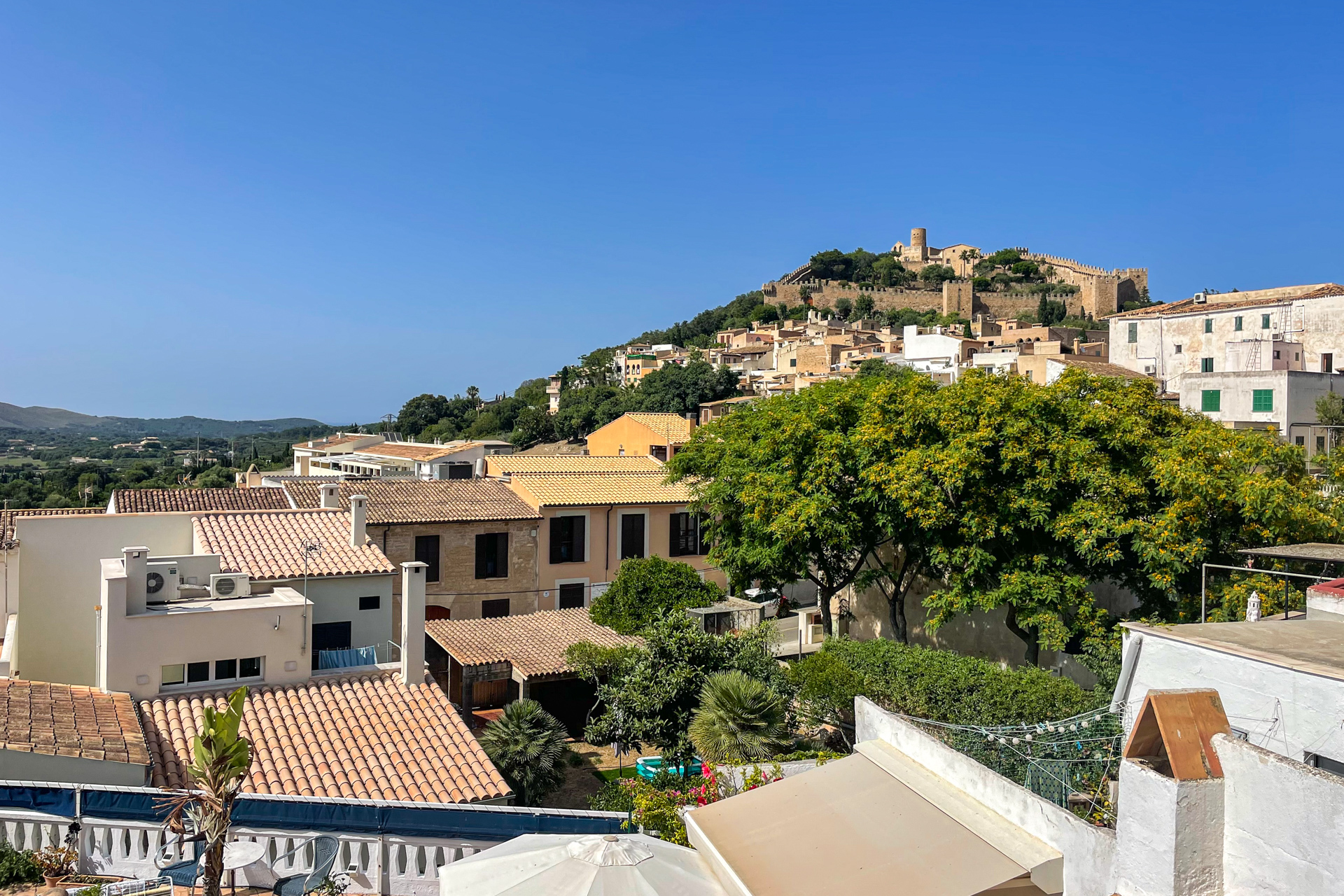 Mallorcan town house with 3 bedrooms, large terrace, castle view, and attic.