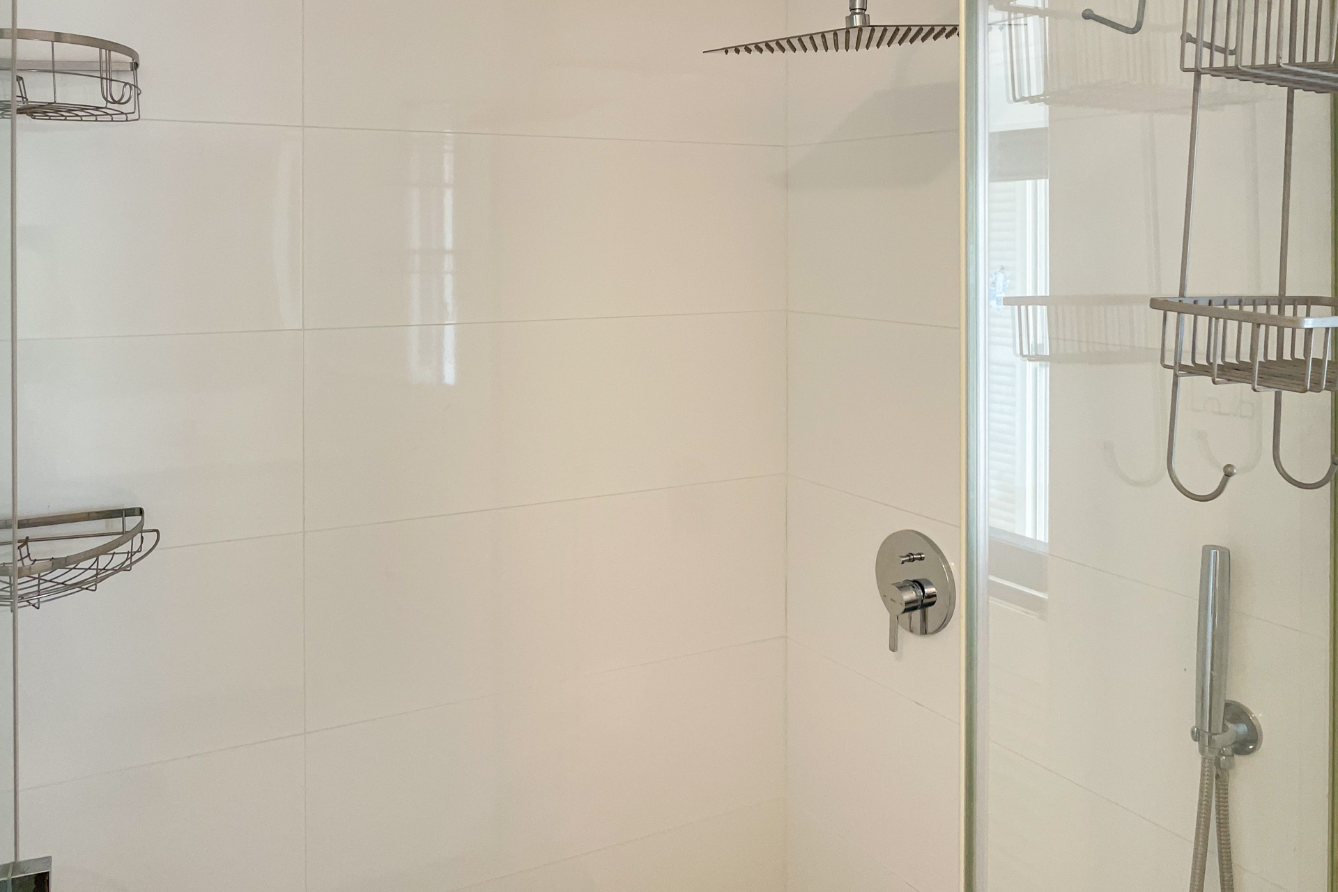 Im hinteren Bereich der Wohnung liegen drei Schlafzimmer, die jeweils über einen eigenen Zugang zur Terrasse verfügen. Ein weiteres Badezimmer ergänzt diesen privaten Wohnbereich.