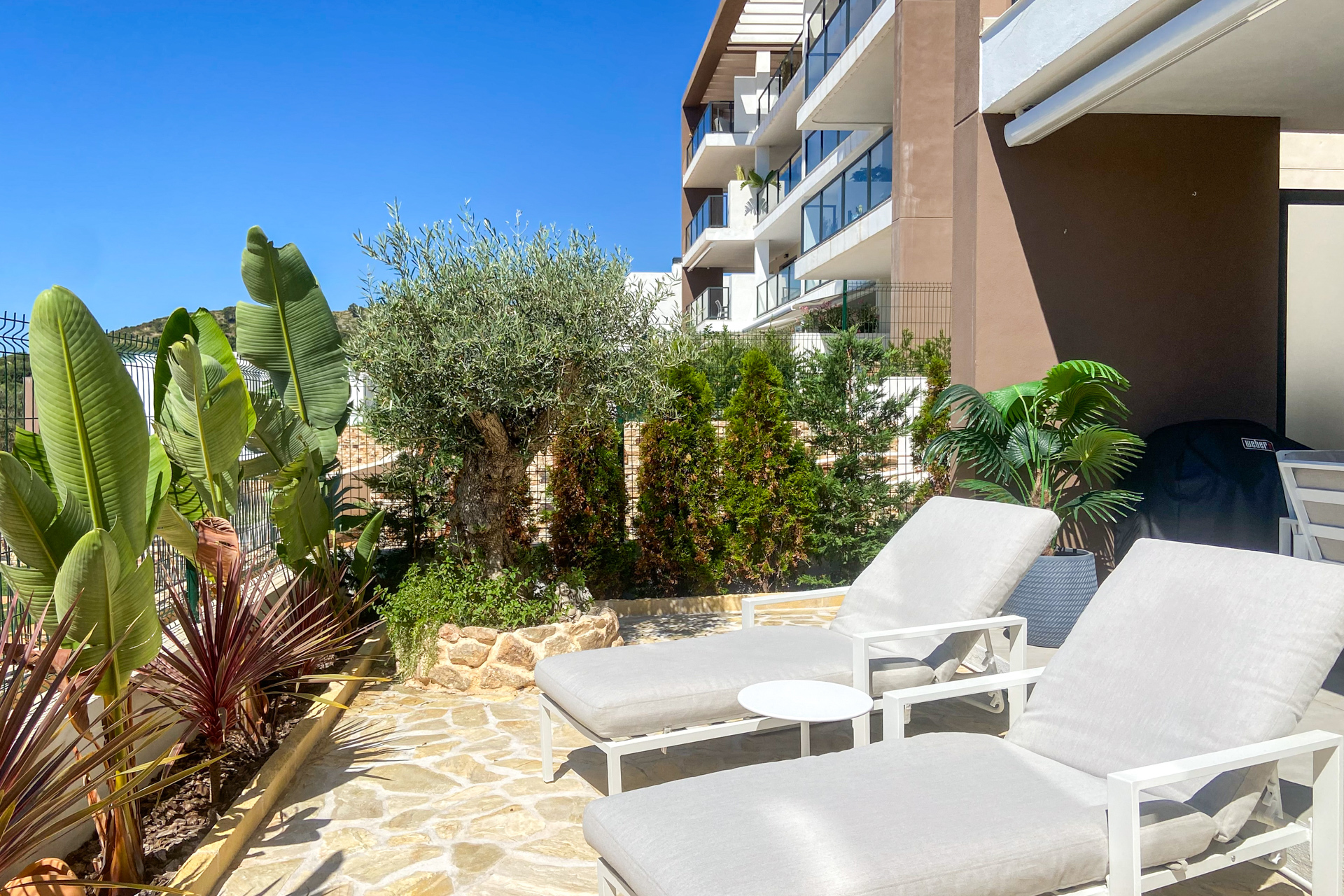 Besonders hervorzuheben ist der private Außenbereich: Die nach Süden ausgerichtete Terrasse mit angrenzendem Gartenanteil lädt zum Verweilen ein und bietet perfekte Voraussetzungen, um das mediterrane Klima in vollen Zügen zu genießen.