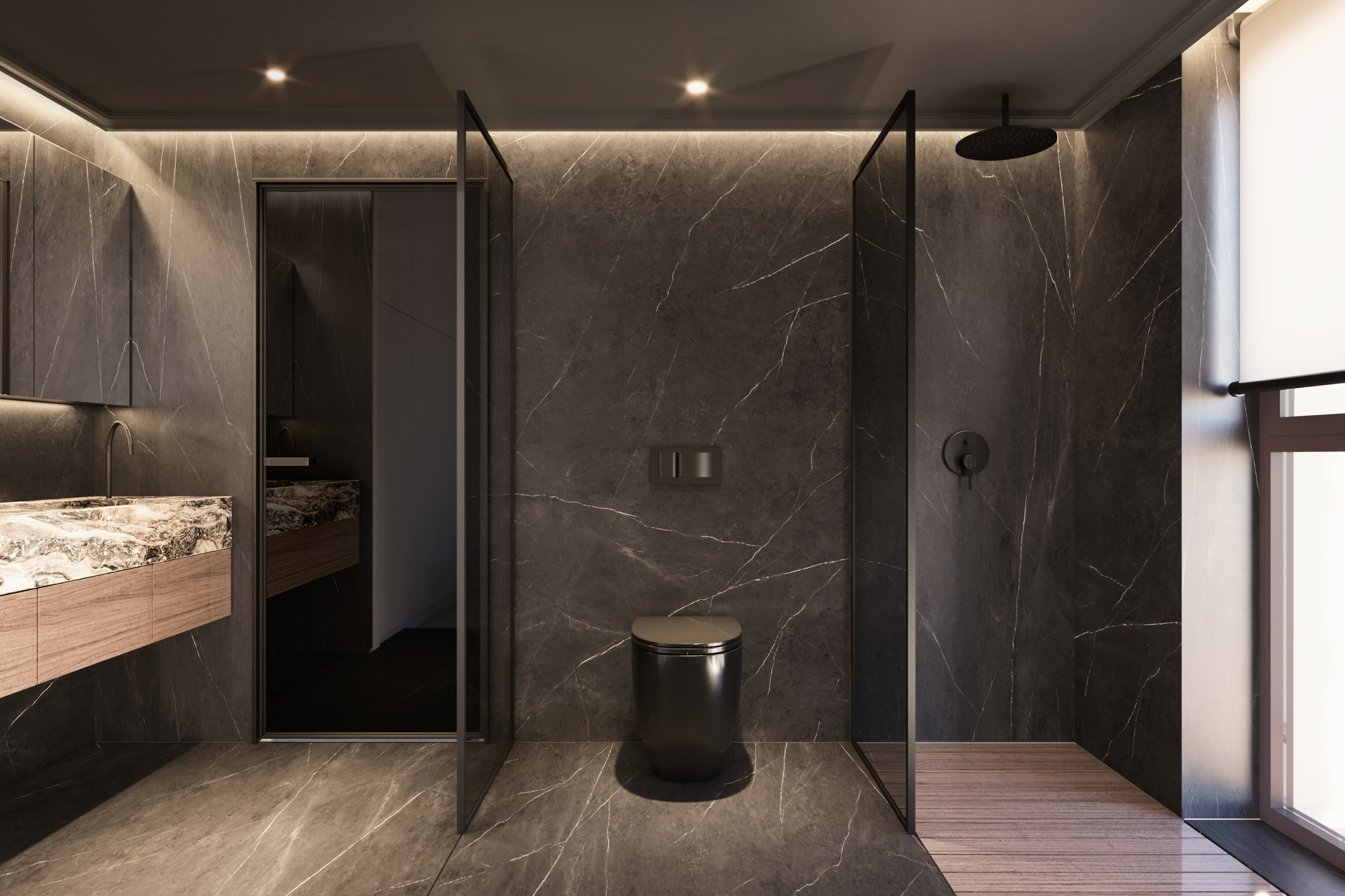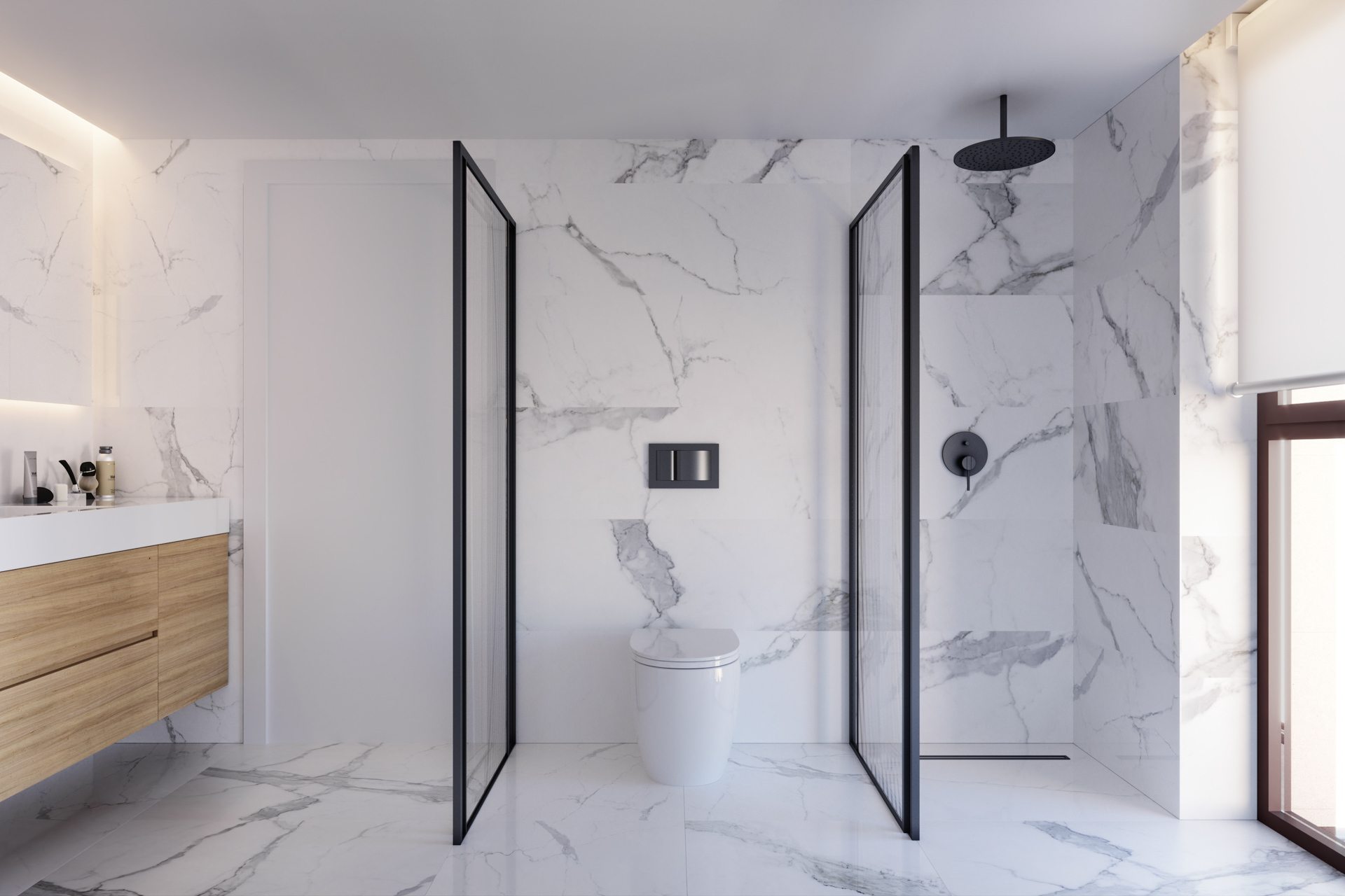 Zwei Schlafzimmer, zwei Badezimmer sowie ein Hauswirtschaftsraum bieten höchsten Wohnkomfort. Alle Haupträume verfügen über direkten Zugang zu den Terrassen.