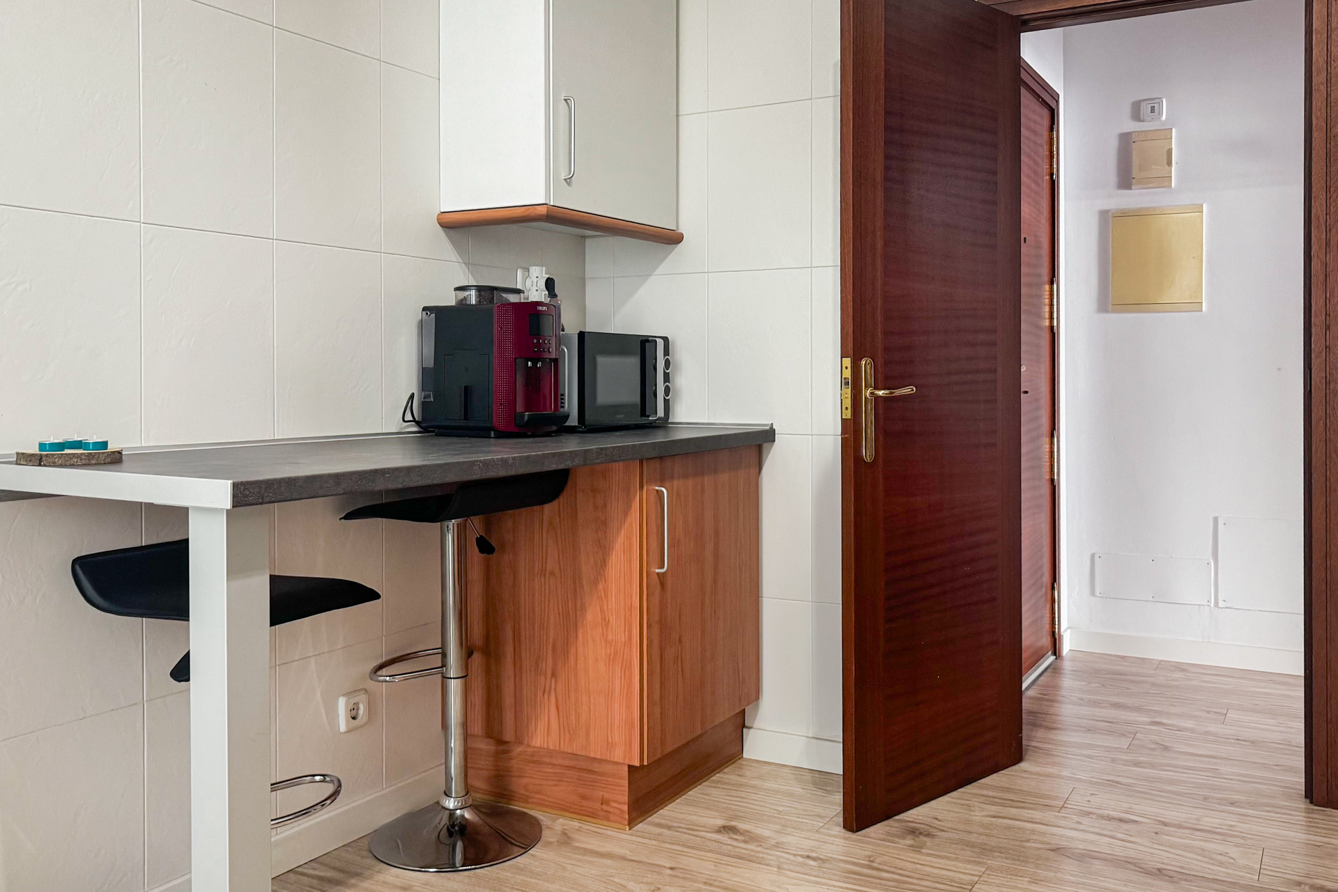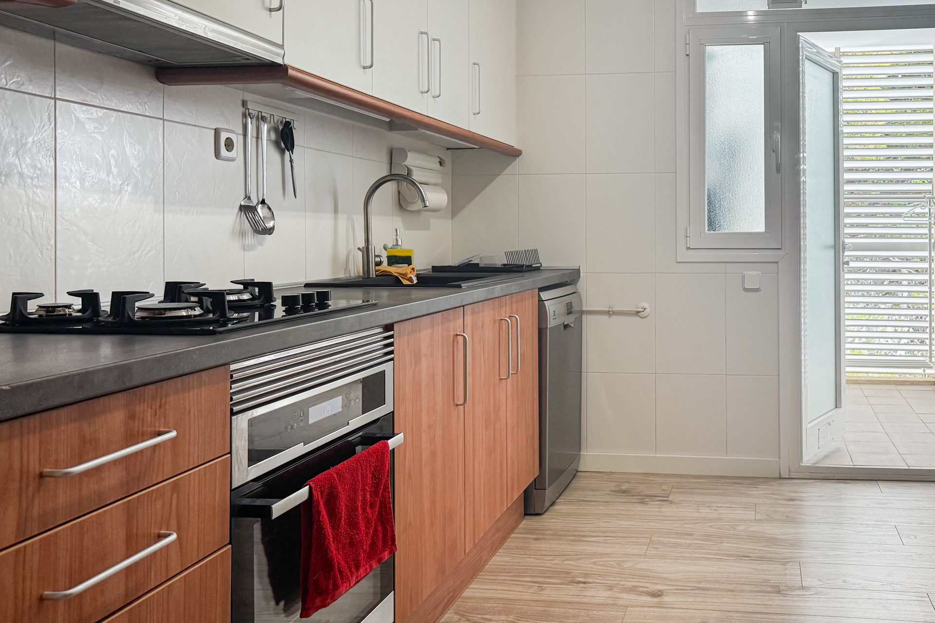 Die Wohnung befindet sich im dritten Stock eines Gebäudes mit Aufzug und bietet ca. 106 m² Wohnfläche. Sie verfügt über eine voll ausgestattete Küche mit Hauswirtschaftsraum, die viel Stauraum bietet.