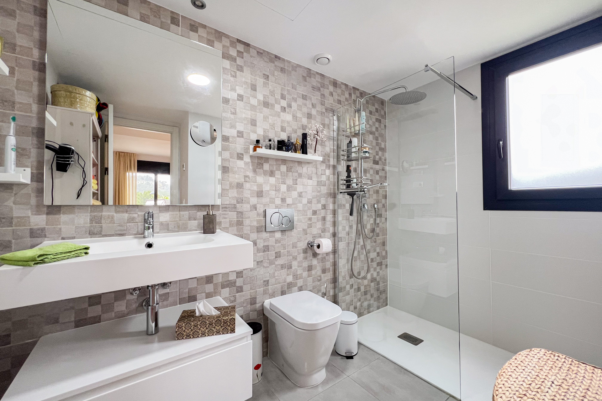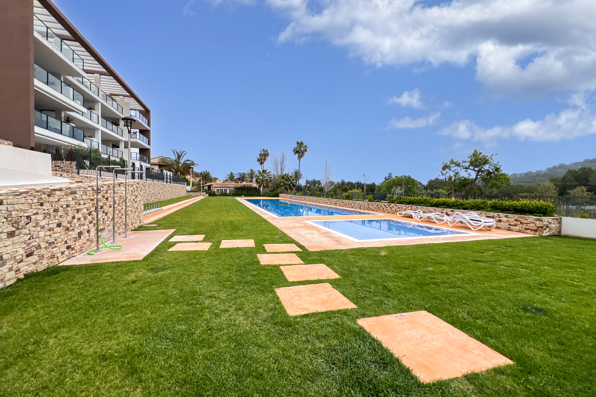 Diese exklusive Erdgeschosswohnung in Font de Sa Cala überzeugt durch ihre großzügige Raumaufteilung, hochwertige Ausstattung und außergewöhnlich viel Außenfläche. Die im Jahr 2023 fertiggestellte, moderne Wohnanlage beherbergt diese stilvolle Immobilie mit einer Wohnfläche von ca. 100 m². Sie umfasst drei Schlafzimmer, zwei elegant gestaltete Badezimmer mit ebenerdigen Duschen sowie einen großzügigen Wohn- und Essbereich mit integrierter, hochwertig ausgestatteter offener Küche.