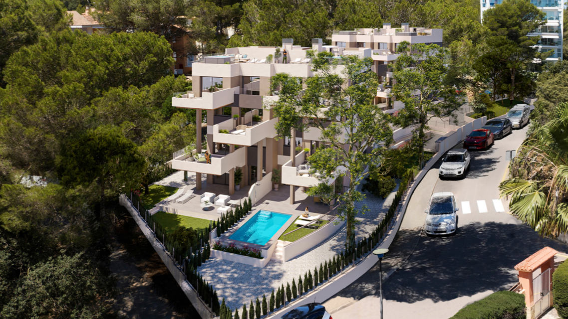 Inmitten eines weitläufigen Pinienwaldes befindet sich diese exklusive Wohnanlage, bestehend aus zwei Gebäuden mit Erdgeschoss sowie drei Obergeschossen. Die Architektur besticht durch eine moderne, klare Formensprache und ein unverwechselbares Design. Insgesamt umfasst das Ensemble lediglich 14 Wohneinheiten – eine stilvolle Auswahl an Apartments, Penthouses und Maisonette-Wohnungen. Großzügige Außenbereiche wurden gezielt so gestaltet, dass sie das Licht und Klima der Insel optimal einfangen und ein Höchstmaß an Lebensqualität bieten.