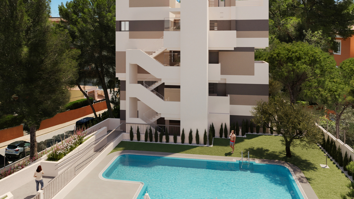 Inmitten eines weitläufigen Pinienwaldes befindet sich diese exklusive Wohnanlage, bestehend aus zwei Gebäuden mit Erdgeschoss sowie drei Obergeschossen. Die Architektur besticht durch eine moderne, klare Formensprache und ein unverwechselbares Design. Insgesamt umfasst das Ensemble lediglich 14 Wohneinheiten – eine stilvolle Auswahl an Apartments, Penthouses und Maisonette-Wohnungen. Großzügige Außenbereiche wurden gezielt so gestaltet, dass sie das Licht und Klima der Insel optimal einfangen und ein Höchstmaß an Lebensqualität bieten.
